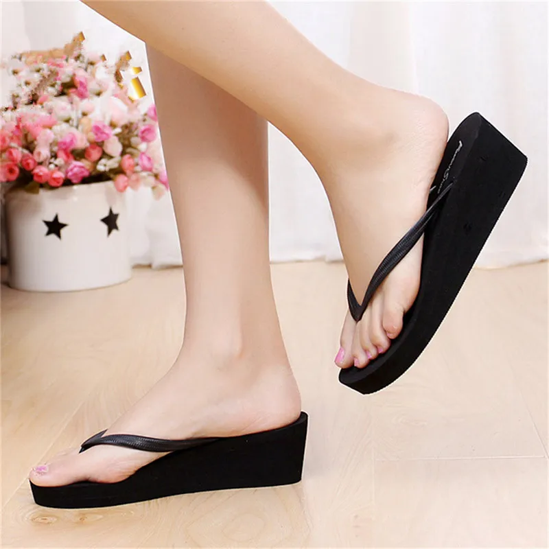LIN KING/повседневные женские вьетнамки на толстой подошве; Шлепанцы на танкетке; Однотонная обувь на платформе; Модная женская летняя обувь на нескользящей подошве; Большие размеры 41