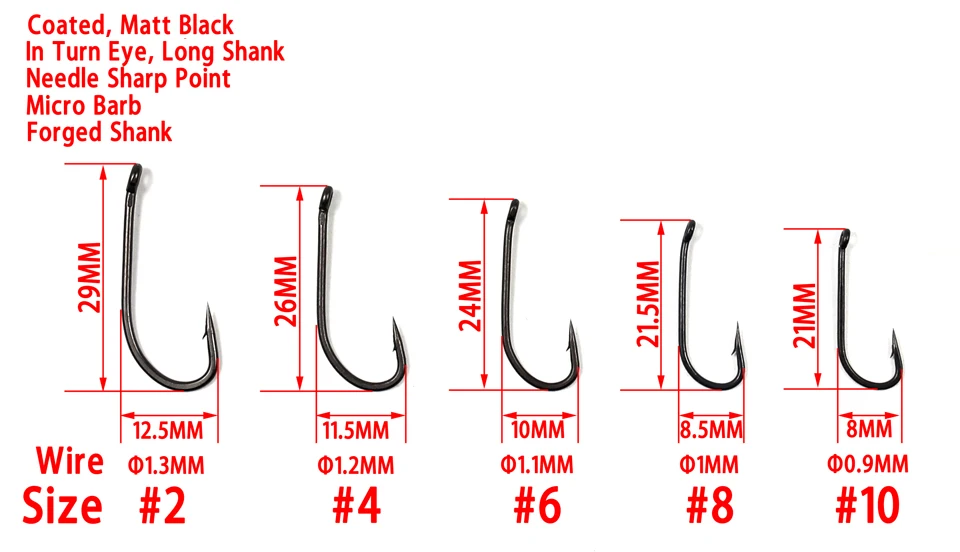 Покрытие, длинный хвостовик, микро Барб, изогнутый глаз, кованый хвостовик