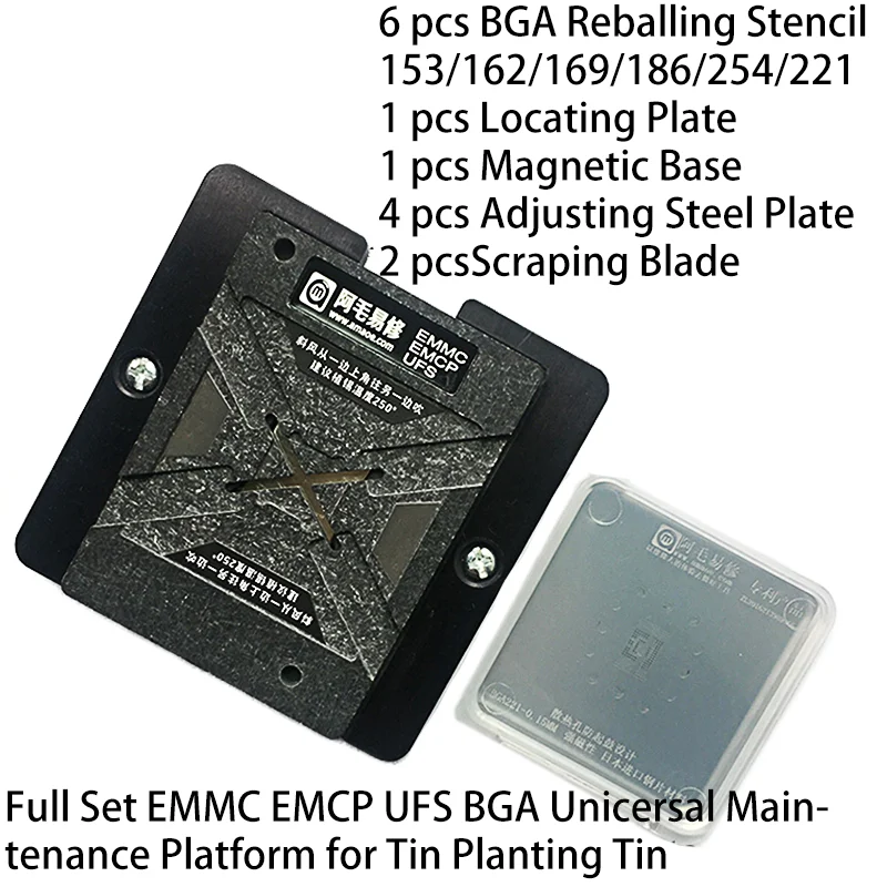 Универсальная поддерживающая платформа, жестяная сетка для посадки BGA, трафарет EMMC EMCP UFS BGA 153 162 169 186 221 254, ремонт чипов