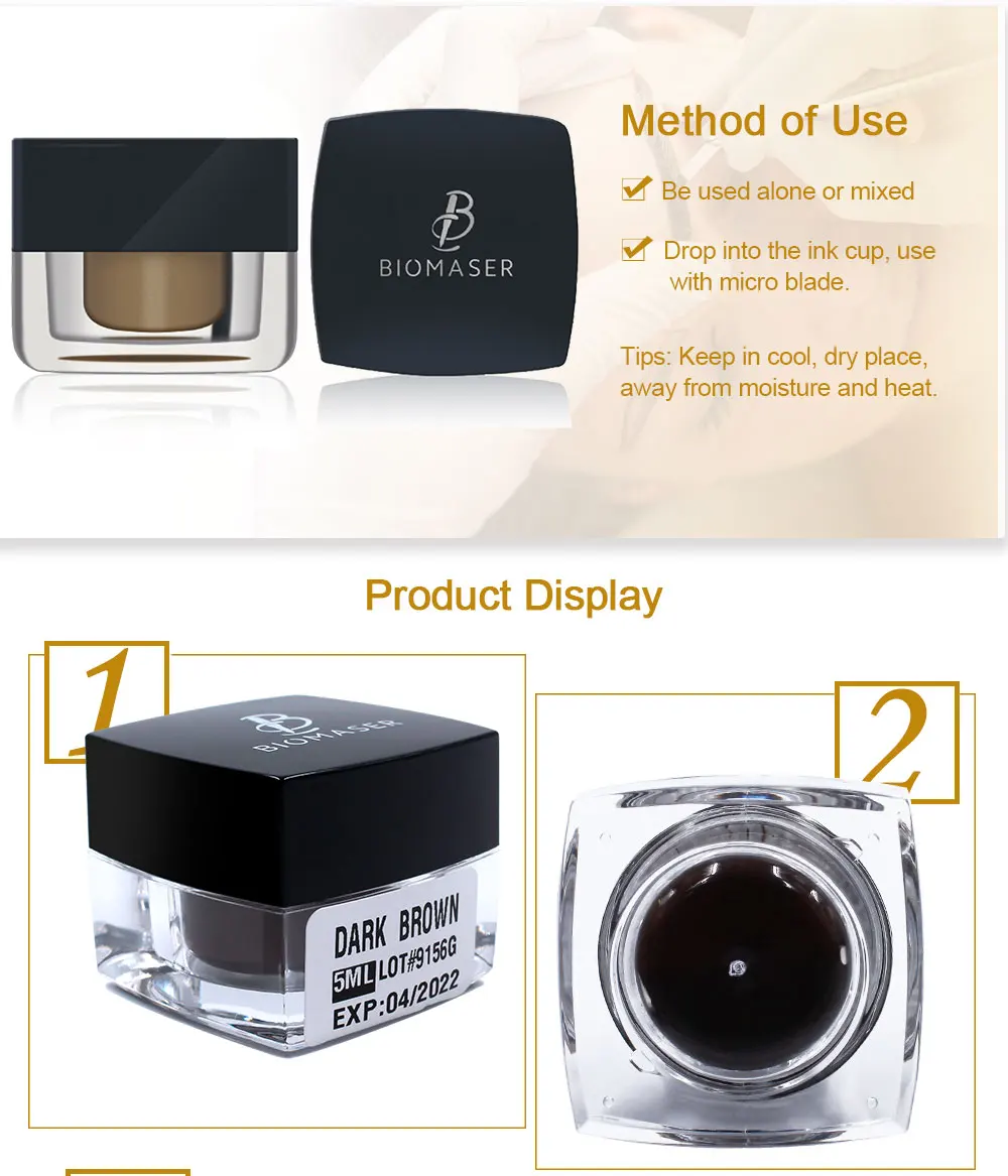1. 14 различных цветов, 100% растительный дополнительный материал, высокое качество 2. Безопасный и простой в использовании 3. Долговечность и низкое потребление 4. Может затенять тело ярким цветом 5. Популярен среди профессиональных татуировок 6. Создает динамичные оттенки черного и легко впитывается в кожу 7. 5 мл/бутылка Цвет: черный/темно-коричневый/черный/коричневый/светло-коричневый/кожа Список Пакетов 6 видов цветов/лот микроблейдинг пигмент