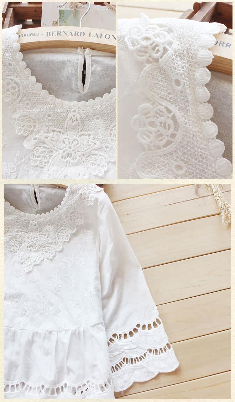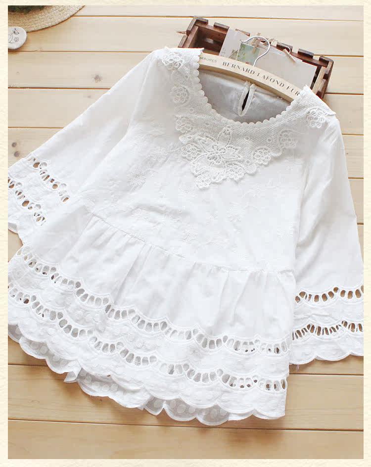Mori Girl/Милая рубашка с вырезами и свободными рукавами для женщин, вязанная крючком кружевная хлопковая белая женская милая блузка принцессы, женские топы, блузки AF772