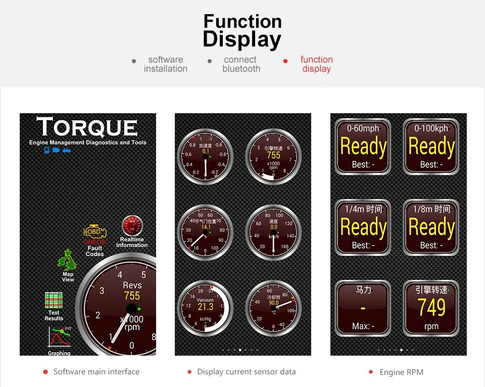 ELM327 Супер Мини Bluetooth сканер инструмент Поддерживает протоколы OBD II следующим образом: 0. Aut0matic Supprots 7 протоколов: 1. ISO9141-2 (5 бод инициализации, 10,4 кбод) 2. ISO14230-4 KWP (5 бод инициализации, 10,4 кбод) 3. ISO14230-4 KWP (быстрая инициализация, 10,4 кбод) 4. ISO15765-4 CAN (11 бит ID, 500 кбод) 5. ISO15765-4 CAN (29bit ID, 500 кбод) 6. ISO15765-4 CAN (11 бит ID, 250 кбод) 7. ISO15765-4 CAN (29 бит ID, 250 кбод) A. SAE J1939 CAN (29bit ID, 250 * кбод) B. USER1 CAN (11 * бит ID, 125 * кбод) C. USER2 CAN (11 * бит ID, 50 * кбод) Функции: 1. Чтение диагностических кодов неисправностей, как общих, так и конкретных производителей, и отображение их значения (более 3000 общих кодов в базе данных). 2. Очистить коды неисправностей и выключить MIL ("Проверьте двигатель" свет) 3. Отображение данных датчика тока 4. Двигатель об/мин 5. Расчетное значение нагрузки 6. Температура охлаждающей жидкости 7. Состояние топливной системы 8. Скорость транспортного средства 9. Краткосрочная топливная отделка 10. Долгосрочная топливная отделка 11. Давление впускного коллектора 12. Предоплата времени 13. Температура впускного воздуха 14. Расход воздуха 15. Абсолютное положение дроссельной заслонки 16. Напряжение датчика кислорода/соответствующая краткосрочная топливная планка 17. Состояние топливной системы 18. Давление топливаНа следующем рисунке показан SW запуск на Android Torque Phone: