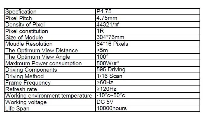 P4.75 F3.75 внутренний красный цвет светодиодный матричный модуль параметр: