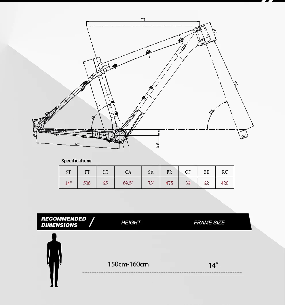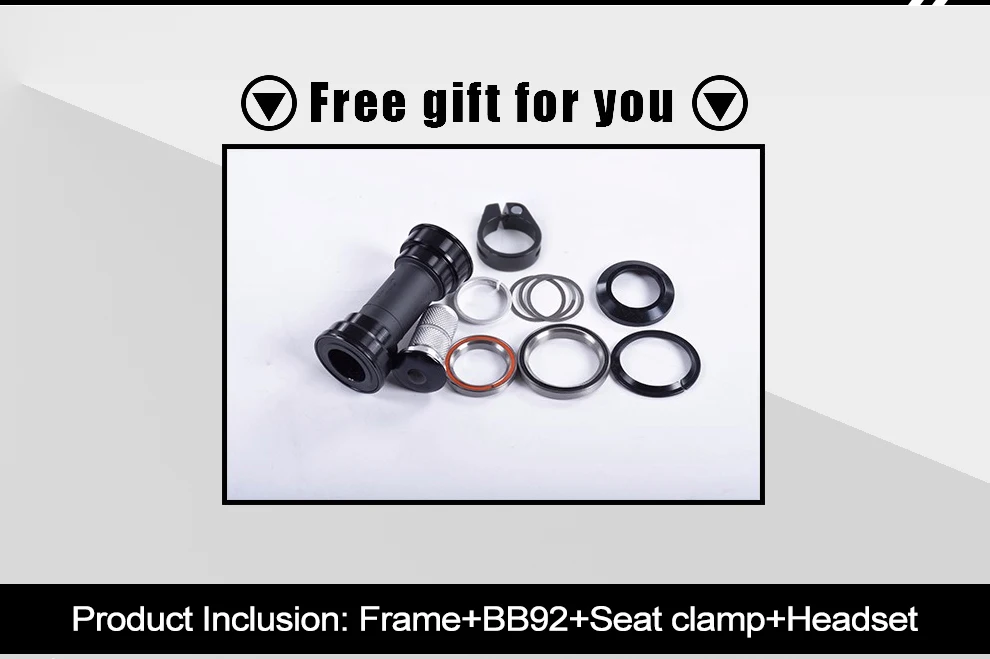 1. Переключатель проходит через внутреннюю часть рамки, которая проста и красива; 2. Тормозная Линия фиксируется снаружи рамы для легкого ремонта и обслуживания; 3. Быстрый выпуск заднего крючка поможет вам легко заменить и ремонт колёса; 5. Нижний кронштейн имеет профессиональный уровень BB92, который является водонепроницаемым и легким; 6. Универсальный Размер сиденья, легко заменить или обновить.