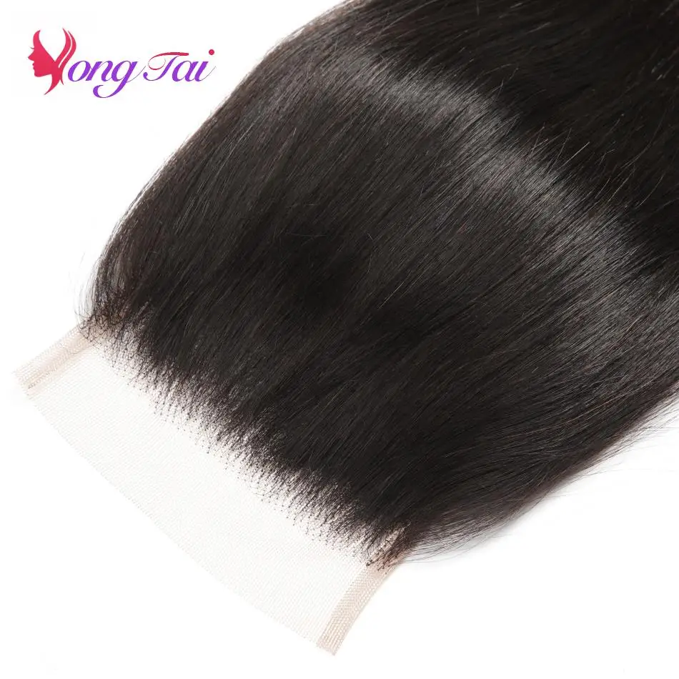 YuYongtai перуанские прямые 3 пряди с 4x4 кружевом натуральные черные не Реми 100% человеческие волосы пряди с закрытием