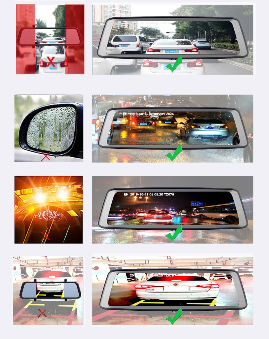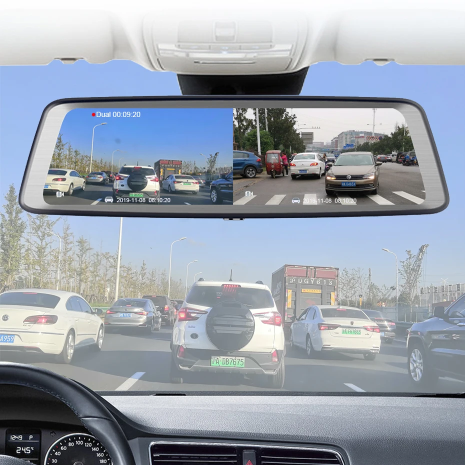 10 дюймов IPS с тройной широкий зеркало заднего вида с помощью потокового видеоЭто все новые технологии для зеркала заднего вида dvr. WHEXUNE K930S оснащен этой передовой технологией потоковой передачи данных, что делает вождение заднего вида более широким, это тройной широкий вид, если сравнить с традиционным зеркалом.
