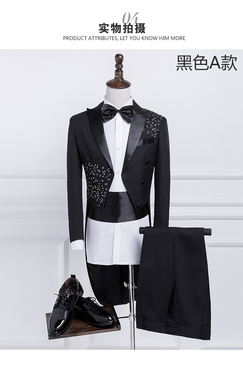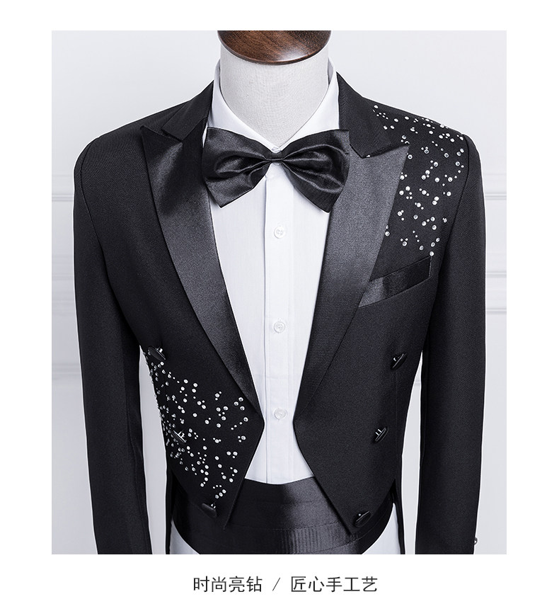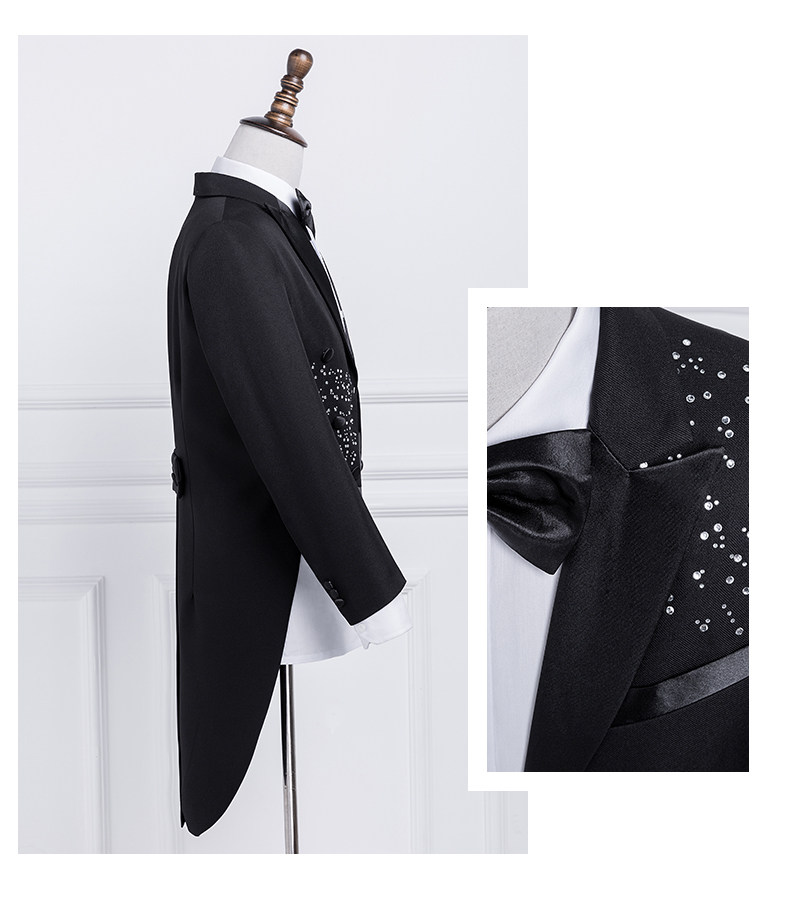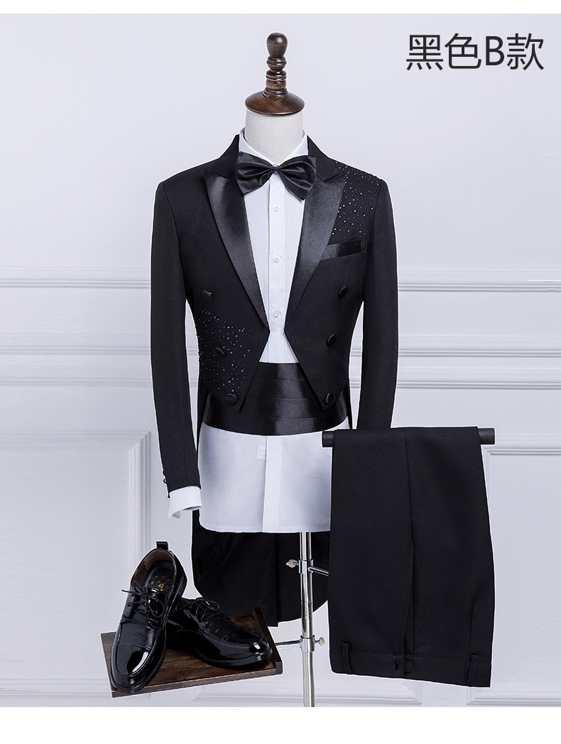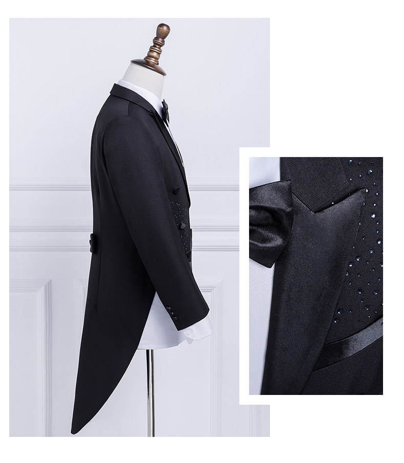 Мужские повседневные костюмы из трех предметов синие смокинг с треугольным