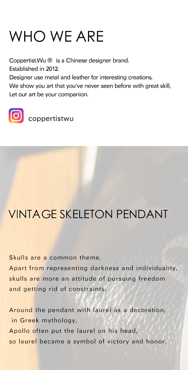 Винтаж подвеска «скелет» Черепа-это обычная тема. Помимо того, что черепа представляют собой тьма и индивидуальность, они в большей степени являются сторонниками свободы и избавления от ограничений. Вокруг кулона с Лорел в качестве украшения, в греческой мифологии, Аполлон часто кладет Лорел на голову, поэтому Лорел стал символом любви и почета. Материал: твердая латунь Длина: 30 мм Ширина: 25 мм Вес: 12г