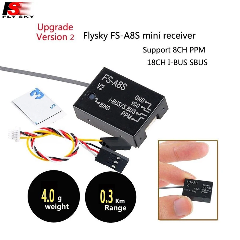 FS-A8S-это компактный 1-полосный приемник, предназначенный для многороторных самолетов. Он использует протокол AFHDS 2A (Автоматическая цифровая система с частотой) и поддерживает стандартный выход PPM и поддерживает i-BUS до 18 каналов. Компактность, простота установки и богатый простой в использовании интерфейс. FS-A8S поддерживает 8-канальный PWM выход, стандартный PPM выход и i-BUS Поддержка до 18 каналов наряду с надежным интерфейсом датчика напряжения. Утонченная работа на основе надежных материалов значительно обеспечивает отличную производительность и высокое качество этого приемника. Итак, вам лучше попробовать!