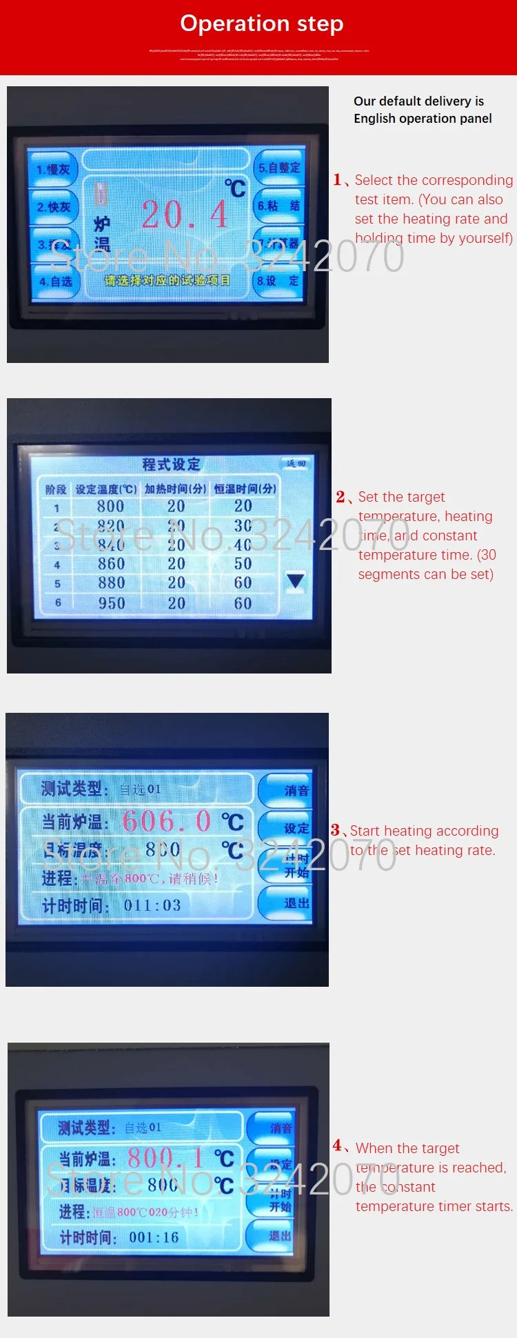 Принять 4,3/7 дюймовый цветной сенсорный экран. Интеллектуальная технология управления может отображать процесс тестирования, время, температуру и функцию в то же время, что может уменьшить ошибки визуального чтения и работы и значительно повысить эффективность работы. Поддержка программы самостоятельного выбора может быть установлена в нескольких сегментах.Для защиты Холла печи во всех направлениях применяются различные процедуры самостоятельного контроля неисправностей.Используя алгоритм управления PID и технологию адаптивного контроля, точность контроля температуры лучше, чем требования национального стандарта, и производительность стабильна и надежна.Контроль температуры соответствует национальным стандартам GB212, GB5447 и GB5449. Он имеет специальные программы нагрева, такие как быстрый метод резьбы, медленное сбой, летучее содержание и индекс адгезии, с превосходной производительностью и высокой точностью управления.Корпус печи изготовлен из высококачественной холодной пластины и пластины из нержавеющей стали с электростатическим напылением. Использование высококачественной вакуумной волоконной печи имеет хороший эффект сохранения тепла, высокую скорость нагрева, значительное Энергосбережение и энергосбережение. По сравнению с традиционными муфельными печами, это экономит 1/2 времени и 2/3 электричества. Его можно использовать для быстрого определения золы и летучего содержания угля и закрепления углерода.Быстрая скорость нагрева (от <2 мин до 9000 ℃), значительная экономия энергии и хороший эффект сохранения тепла.Красивый внешний вид, утонченное мастерство, прочный и прочный, не легко деформируется.