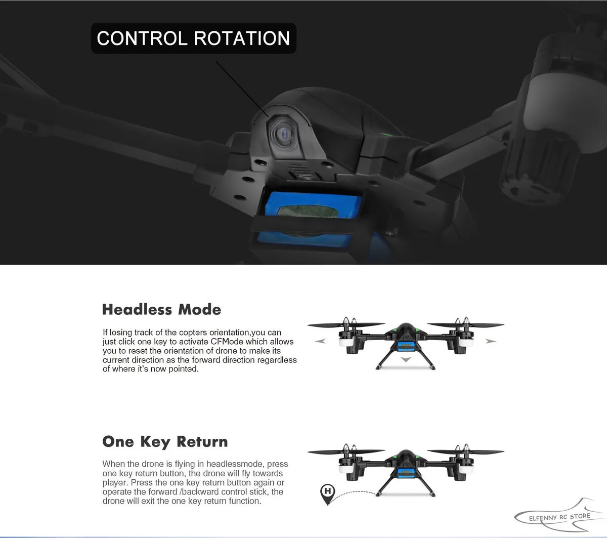 -Одно нажатие автоматическое возвращение, гарантирует, что вы можете перезвонить ваш Квадрокоптер без каких-либо задержек