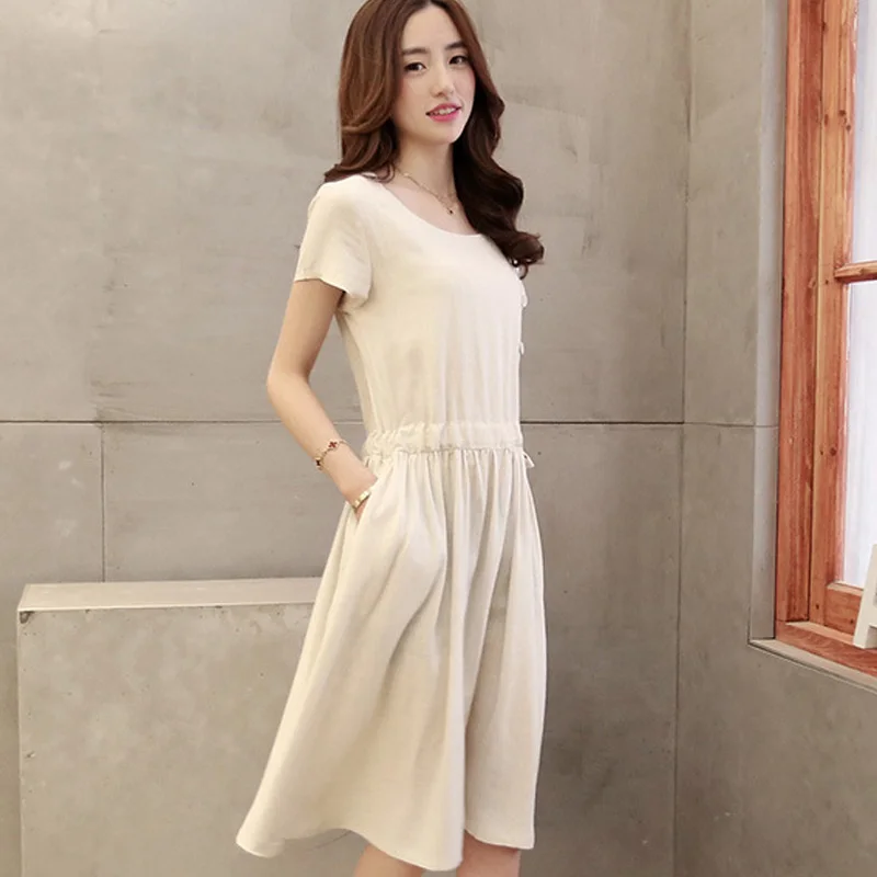 Хлопковые и льняные платья | Короткие рукава, летний сезон | Повседневный консервативный стиль