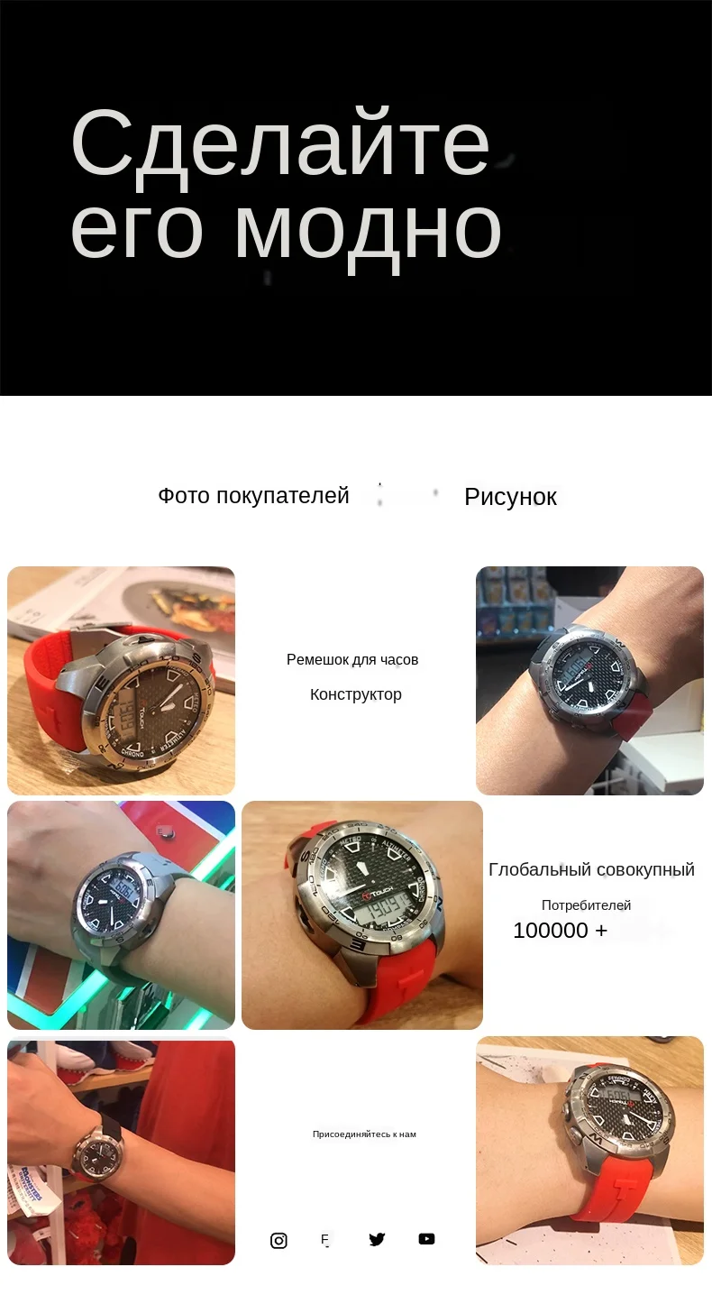 Универсальный силиконовый ремешок AOOW для наручных часов браслет со стальной