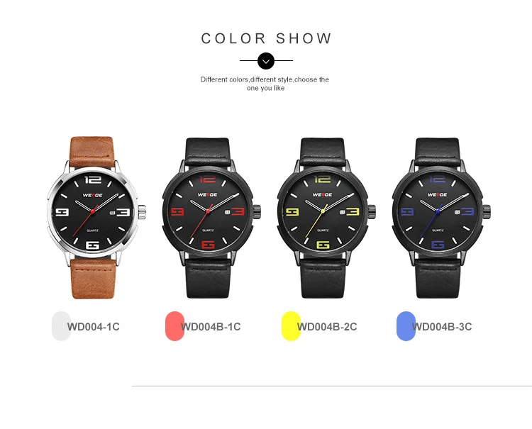 Бренд: WEIDE Артикул: WD004 Стиль: спортивный, Повседневный, деловой Дисплей: Аналоговый Механизм: оригинальный японский EPSON AL32 Особенности: -Модель (WD004) с четырьмя привлекательными версиями; -Классический дизайн только для 2017 года; -Японский EPSON AL32 механизм с батареей MAXELL SR626SW; -Крутые и специально разработанные WEIDE часы; -Ремешок для часов из искусственной кожи и Пряжка из нержавеющей стали; -Уникальный логотип 3D WEIDE и Universe с гальваническим покрытием. -Экологический IP черный вакуумный гальванический чехол, и прошел стандарт ROHS; -Корона часов с экологичным ips-бронзовым гальваническим покрытием; -Водонепроницаемость 30 метров (не нажимайте кнопки под водой); -Рабочая температура: от-10 ℃ до + 50 ℃ -Погрешность при ходьбе ± 45/м. Параметры: Чехол Диаметр: 4,4 см Чехол Толщина: 1,06 см Длина ремешка: 20 см Группа Ширина: 2,2 см Компоненты включает в себя: 1 x оригинальные часы WEIDE 1 x Оригинальная гарантийная карта WEIDE