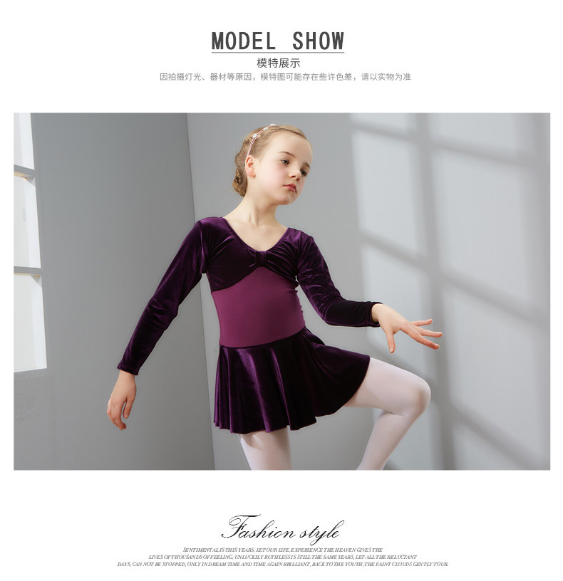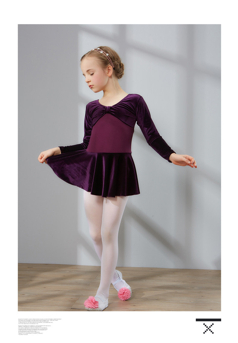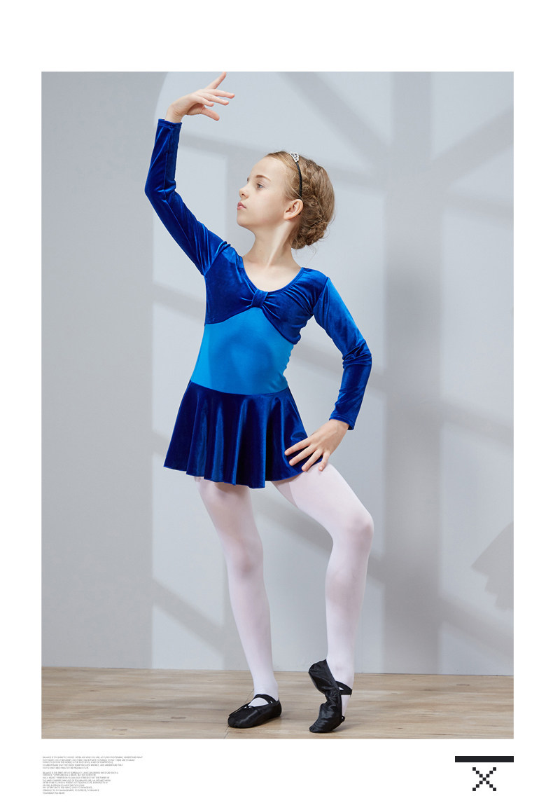 Новая детская Одежда для танцев из бархата золотого цвета танцевальный костюм с длинными рукавами для девочек детская балетная юбка осенне-зимняя одежда для танцев