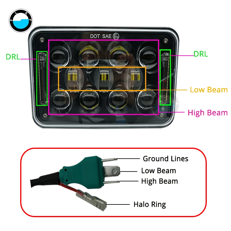 4x6 inch DOT Approved HeadLamp Square 5'' 60W Led Work Hi/Lo beam Light Truck Light System For Ford Mustang