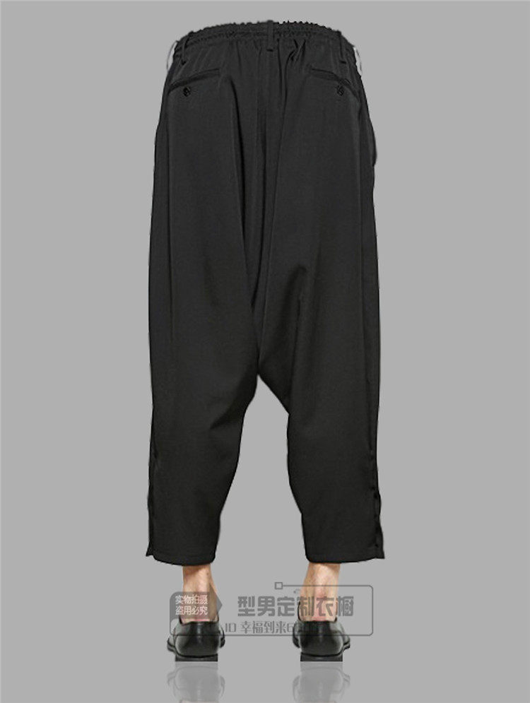 Мужские штаны с большим шаговым швом, мужские шаровары больших размеров, повседневные обтягивающие штаны средней длины