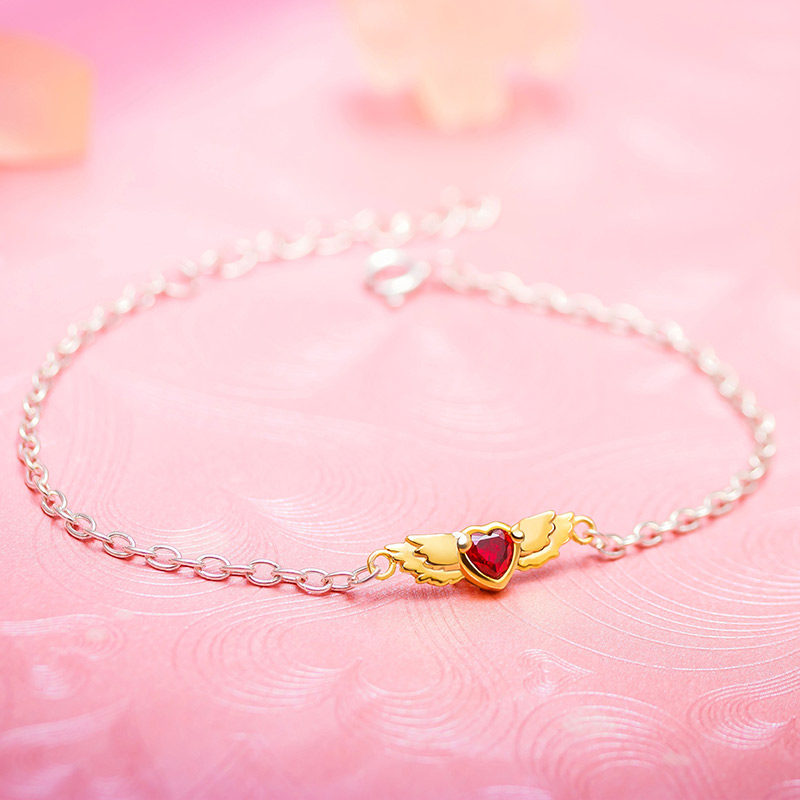 S925 карты Captor Sakura Kinomoto Сакура Красное сердце с золотыми крыльями браслет ручной цепи косплей девушка BBF девушки подарок N1