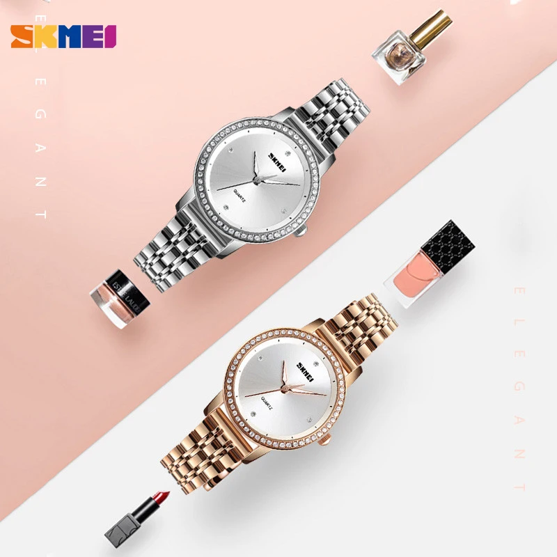 Роскошные Кварцевые женские часы из нержавеющей стали с бриллиантами SKMEI Брендовые женские модные наручные часы с кристаллами элегантный подарок для девушки часы 1311