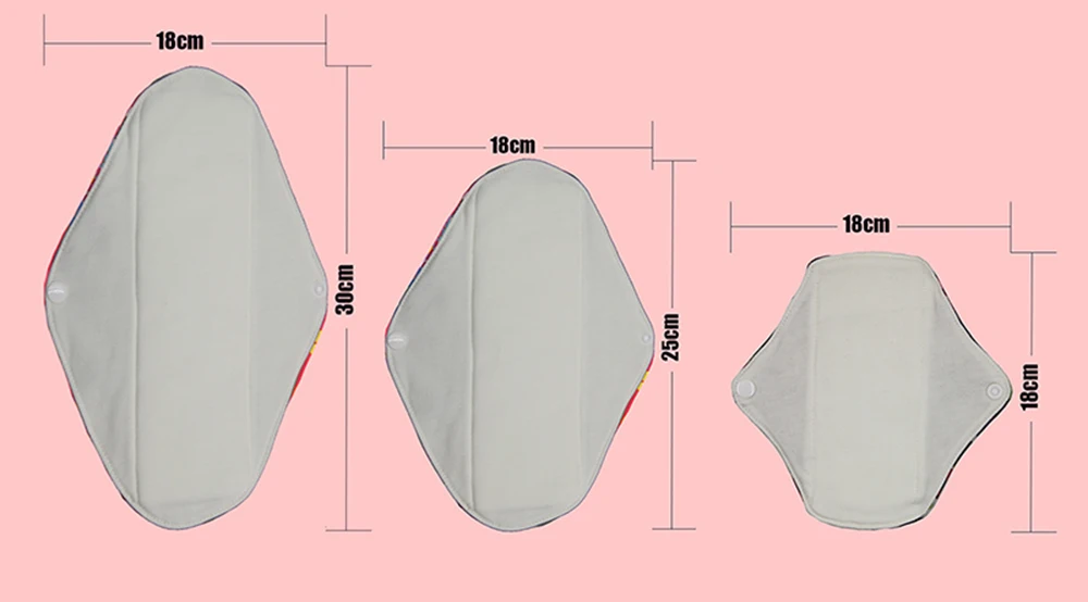 Размер S 18 см * 18 см для низкого потока M Размер 18 см * 25 см для регулярного потока Размер L 18 см * 30 см для интенсивного потока