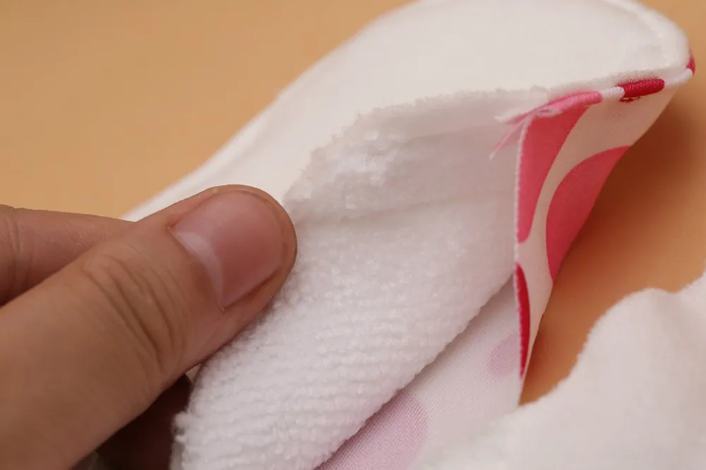 1. Внешний слой --- напечатанный полиэстер с водонепроницаемым ТПУ; 2. Средний слой --- высокое поглощающее волокно; 3. Внутренний слой --- сенсорный слой кожи, мягкий бамбуковый хлопок