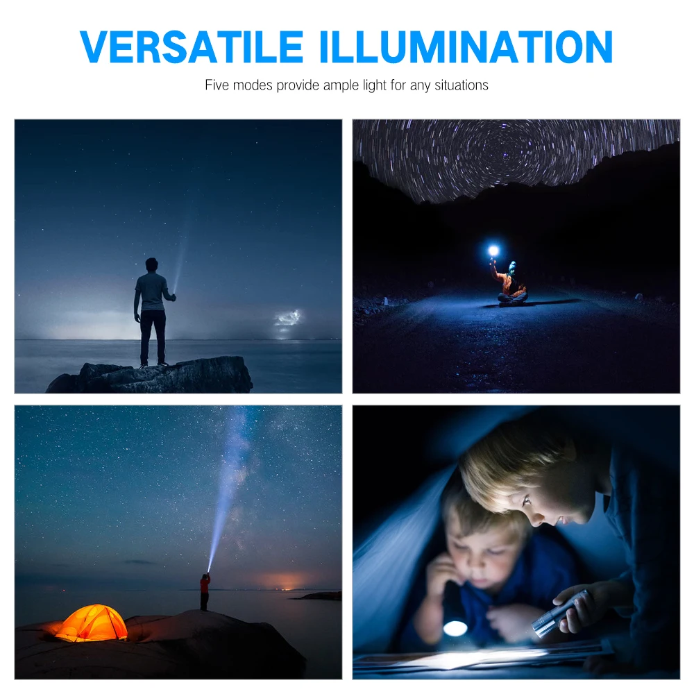 5 режимов яркости. Выходная яркость может достигать 1000 люменов. Поставляется с регулируемым диапазоном фокусировки, который идеально подходит для пеших прогулок, кемпинга и других видов активного отдыха. Примечание: для зарядки фонарика требуется около 2 часов. При зарядке выключатель включит красный светильник. Когда включается зеленый светильник, это означает, что светодиодный светильник полон электричества. Более 90% покупателей выбирают посылка с аккумулятором и зарядным устройством, рекомендуется приобрести посылка с аккумулятором и зарядным устройством.