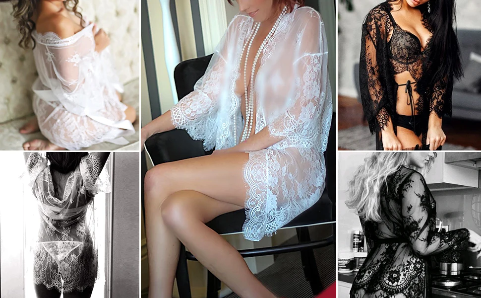 Кимоно для невесты, ночная рубашка и халат, комплект размера плюс, сетчатый халат, сексуальный с поясом, дышащая Пижама, одежда для сна, кружевные халаты, подробное описание: