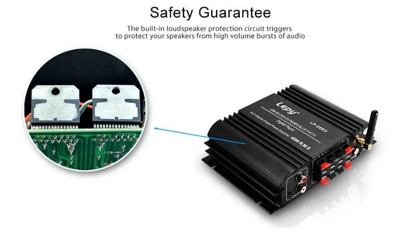 LEPY LP-269S HiFi Цифровой стерео усилитель, без вилки, без sd-карты, без u-диска, 2-канальный звук совместим с автомобильным мотоциклетным компьютером, bluetooth