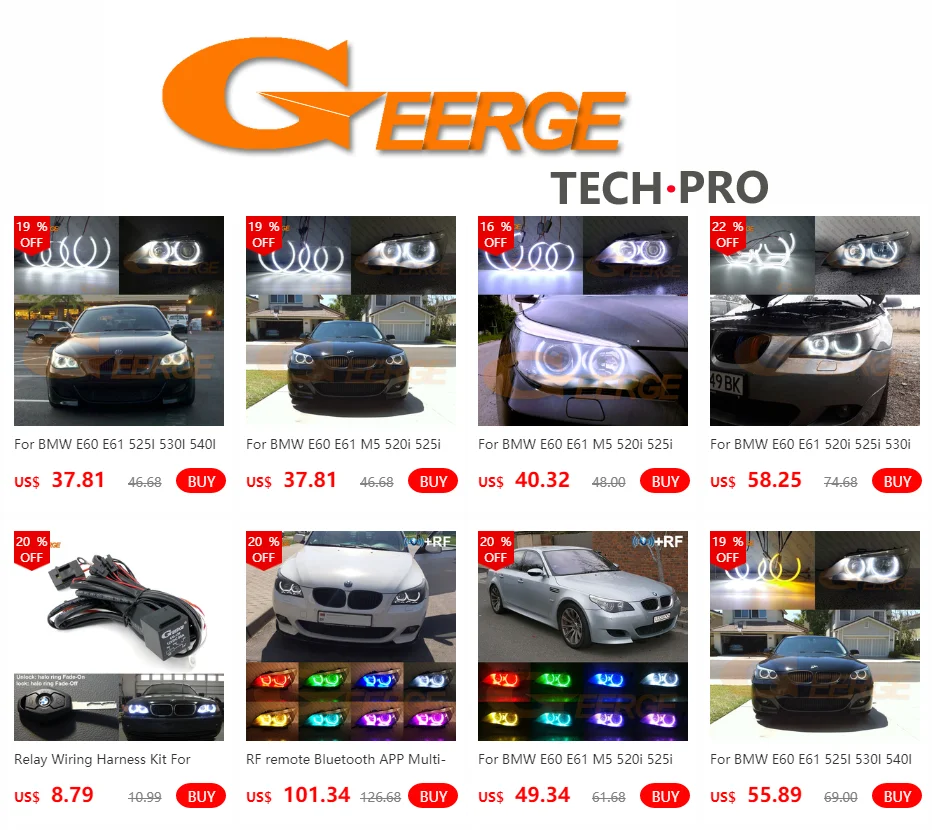 Важно: это COB LED halo кольца отличаются от других брендов angel eyes. Это автомобильные кольца для стайлинга. Не нужно резать рассеиватель, объектив и пластик внутри фары. Фабрика Geerge angel eyes проводила идеальную установку, насколько это возможно, не уничтожая внутреннюю структуру фар. Это невозможно для других брендов товаров.
