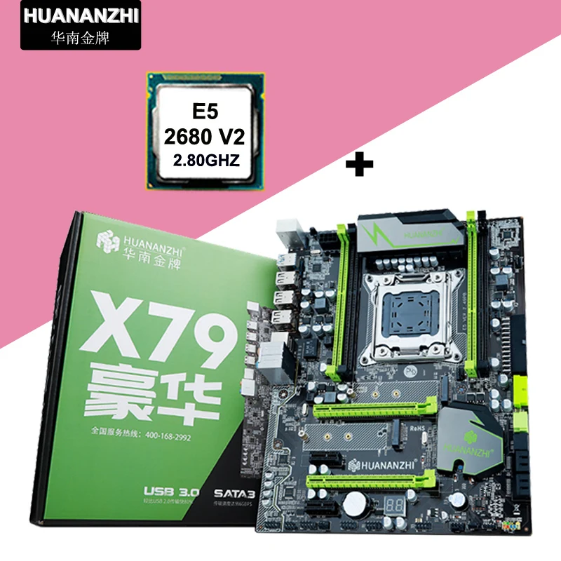 X79 LGA2011 материнская плата с двумя слотами M.2 + процессор Intel Xeon E5 2680 V2 + кулер-адаптер + кабель SATA + металлический задний щит + диск драйвера + Руководство пользователя