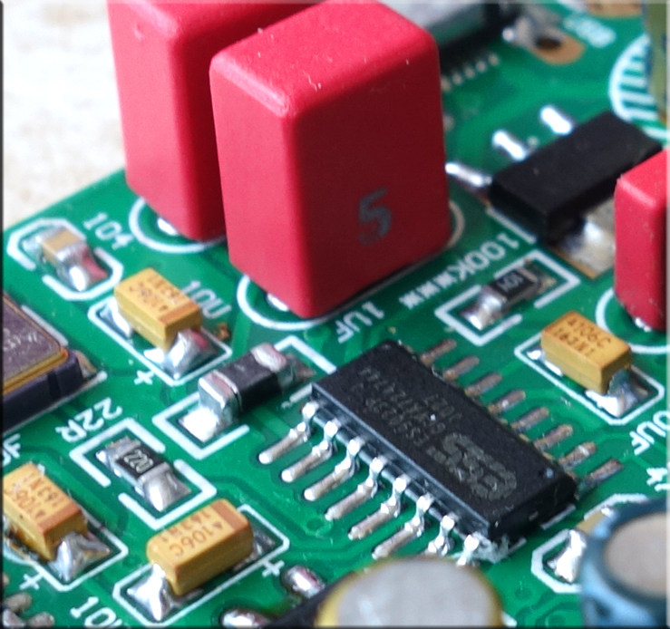 Декодирующая часть принимает последний US ESS9023 верхнего уровня декодирования ядро. ES9023 представляет собой 24-битный стерео аудио цифро-аналоговый чип преобразования (DAC) ESS. Он использует лидирующую в отрасли технологию преобразования цифрового в аналоговый. Этот чип устанавливает лучшее качество звука и экономичность. В одном, что делает его идеальным выбором для преобразования цифро-в аналоговый. ES9023 использует запатентованную Hyperstream architecture и технологию подавления дрожания во времени, чтобы обеспечить качество записи без дрожания с динамическим диапазоном 112 дБ.