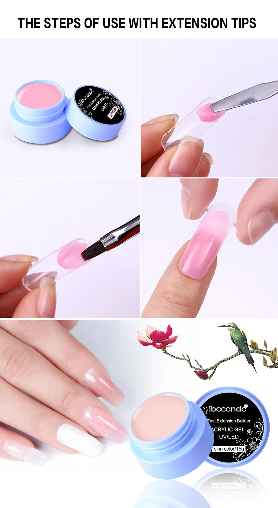 Вежливое напоминание: 1. Чистый вес 15 г. Емкость флакона превышает 15 г, флакон заполнен гелем не полностью! 2. Возможные причины различий в цвете: настройки вашего монитора, освещение, фон и т.д. 3. После нанесения геля на ногтевые пластины также нанесите гель на край ногтей, чтобы увеличить время ношения геля. Более того, не забудьте нанести верхнее базовое покрытие. Используйте следующие шаги: Шаг 1: Полировка поверхности ногтей, нанесение базового слоя, сушка под светодиодной лампой. Шаг 2: Возьмите экстенсивный гель IBCCCND, нанесите его на ногти. Шаг 3: Окунув кисть в гель, взять небольшое количество геля и нанести его на ногтевую платину. Смоделировать форму всех ногтей. Шаг 4: Высушить под светодиодной лампой. Шаг 5: Придать форму ногтям, используя пилочку и гладкую полировку. Шаг 6: Нанести тонкий слой верхнего покрытия. Высушить под лампой. Как удалить: 1.-впитывайте ногти в средство для удаления акрила в течение 5 минут. 2.-аккуратно разорвите весь кусок эмали для ногтей на каждом ногте.