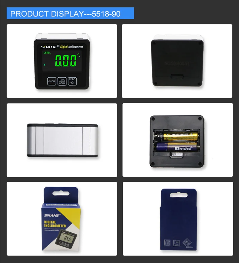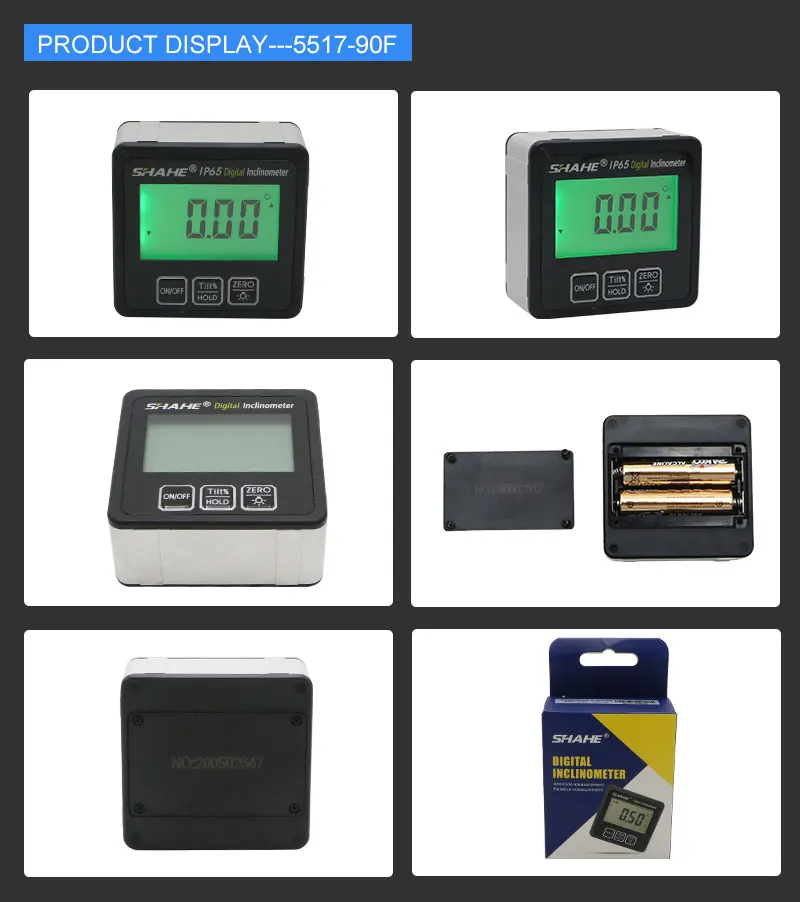 Примечание: посылка будет отправлена без аккумулятора, тип батареи-аккумулятор AAA ★Особенности 1. Материал алюминиевого сплава 2. Относительный/абсолютный обмен измерений в любом положении 3. Преобразование угла и наклона 4. Хранение данных 5. Магниты внутри, односторонние магниты 6. Быстрый дисплей измеренного значения на ЖК-экране 7. Автоматическое отключение в течение 5 минут 8. Портативный размер, удобно сотрудничать с другими измерительными инструментами и увеличить диапазон измерений 9. Отлично подходит для пилы и пилы для стола ★Параметры Диапазон измерения: 4*90 ° Разрешение: 0,05 ° Точность: ± 0,2 ° Повторяемость: 0,1 ° Батарея: AAA (номер 7) батарея (не входит в комплект) Рабочая температура: 0 °C-40 °C Размер: 56,6*54,6*26 мм Магнит внутри, односторонние магниты С подсветкой ★Применение Более широкое применение в деревообрабатывающей промышленности (особенно в мебельной промышленности) для точной резки углов дерева; Автомобильная ремонтная промышленность для утомительного монтажа угла точного контроля; В обрабатывающей промышленности для станка угол работы точный позиционирование, и большой угол поворота рычага транспортного средства и т. Д.