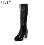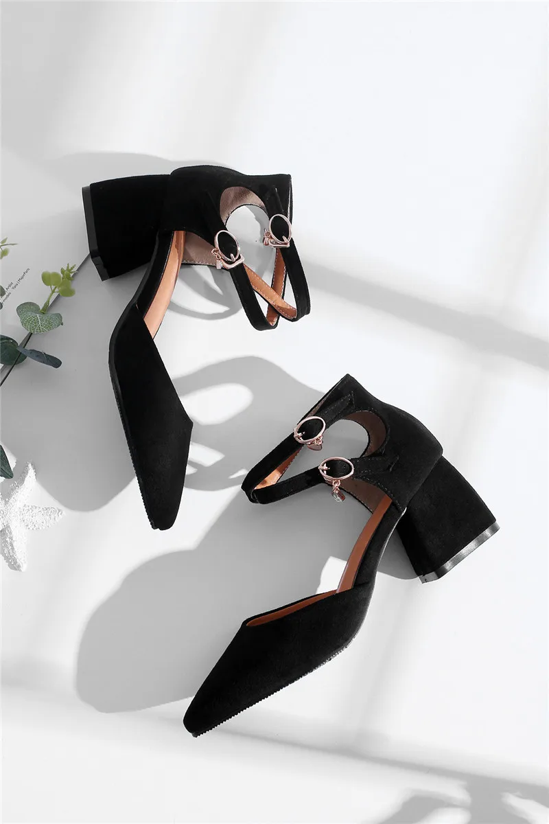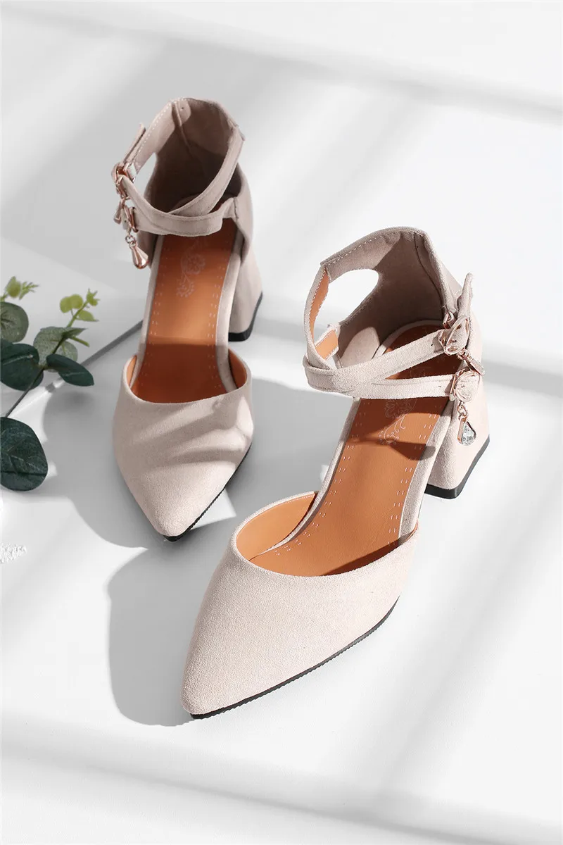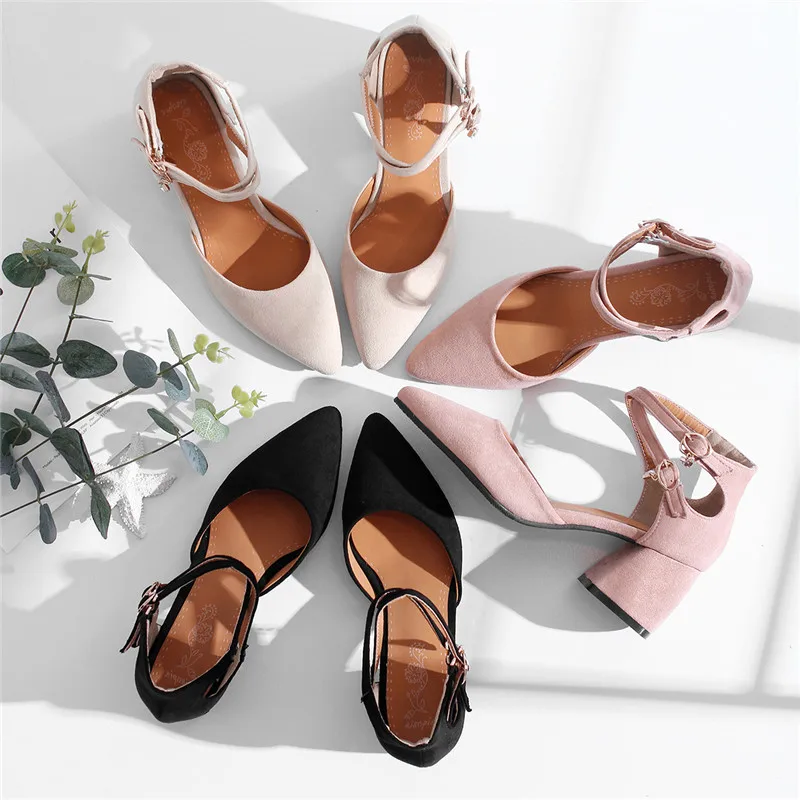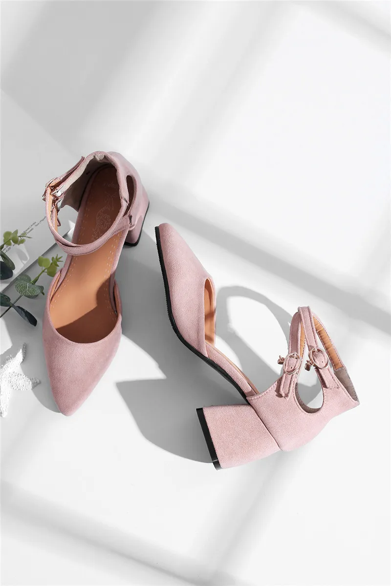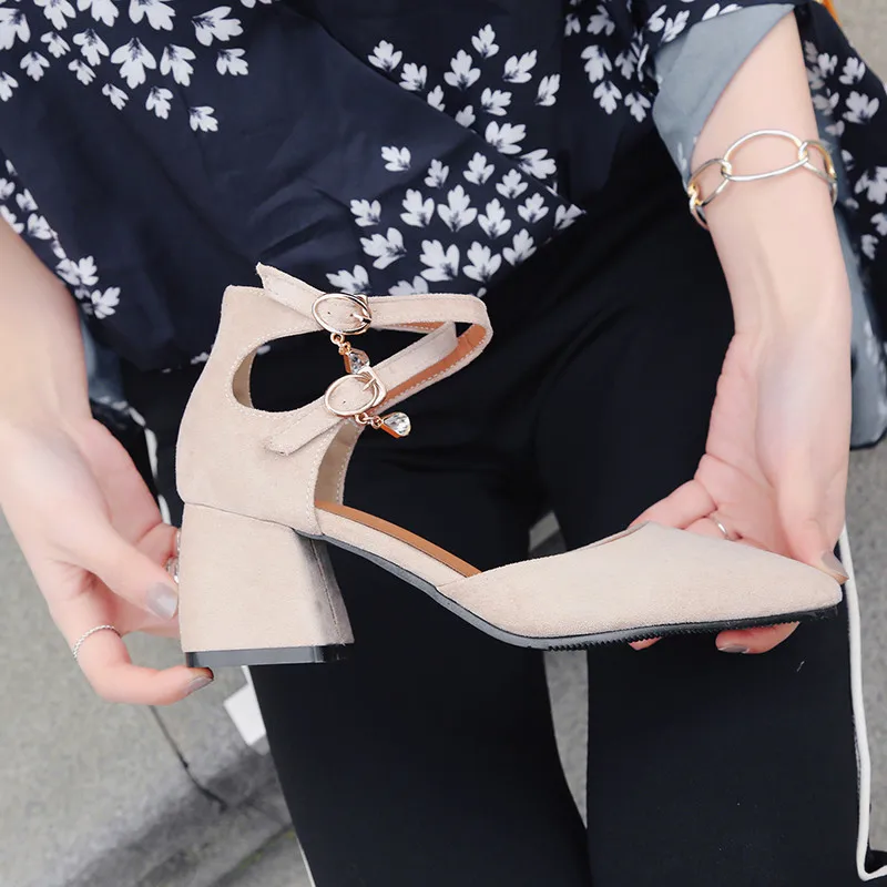 ZJVI/женские модные босоножки на высоком квадратном каблуке; Женская летняя обувь; 2018; Женские замшевые босоножки из нубука с острым носком и ремешком на щиколотке