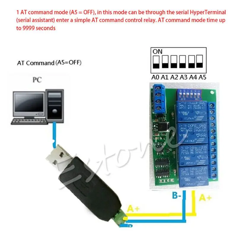 DC 12 V 4Ch RS485 Modbus AT command релейная плата