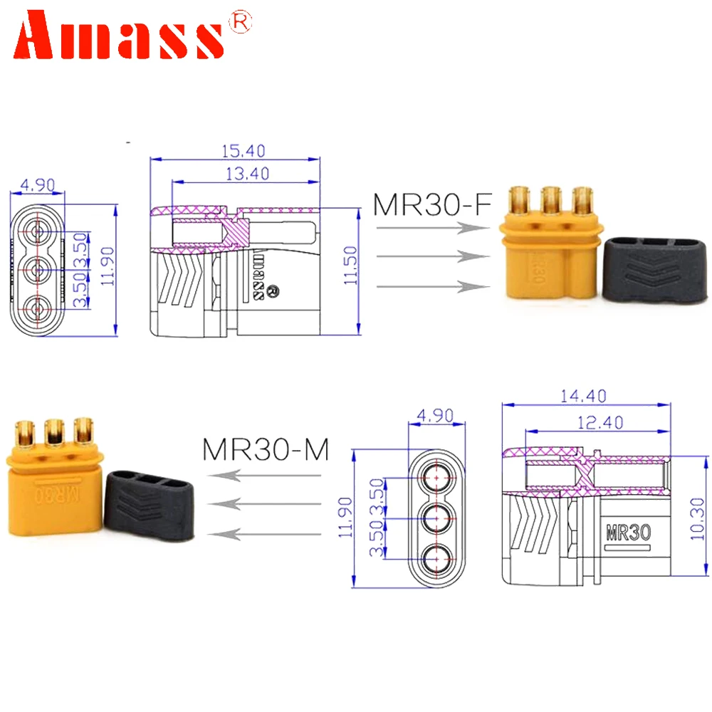 Amass MR30 разъем с оболочкой женский и мужской