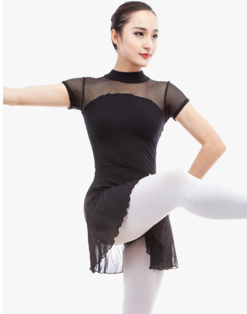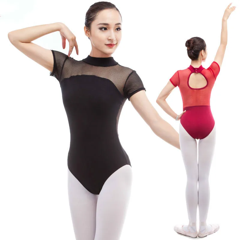 Для взрослых гимнастика соревнование трико танцевальная одежда балетное кружево для женщин короткий рукав костюм хлопок боди Сексуальная черная танцевальная одежда