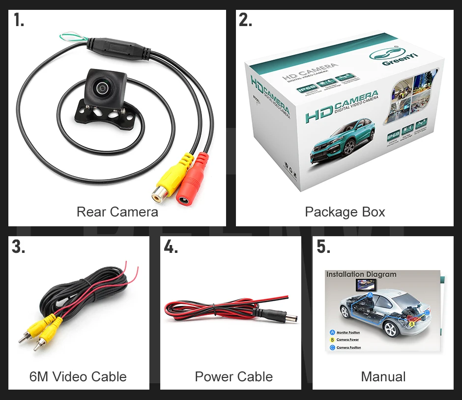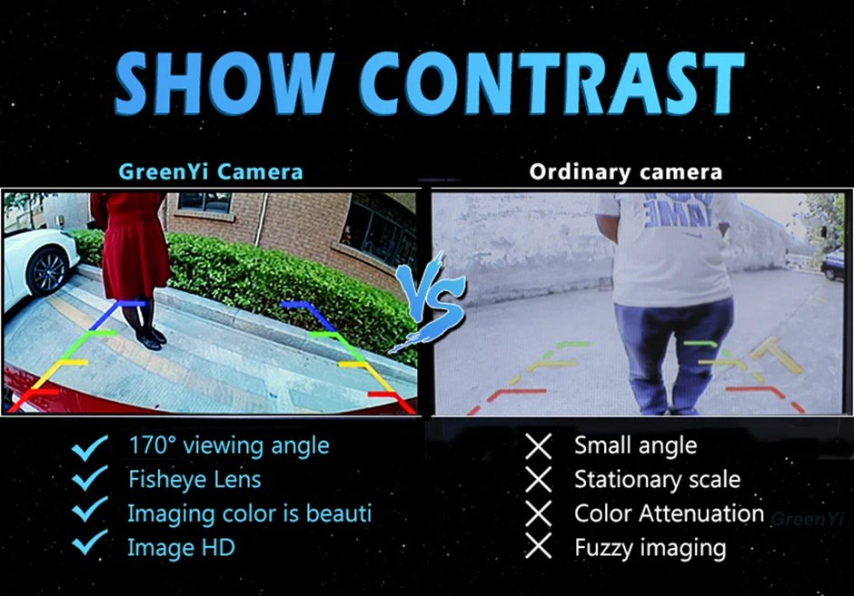 GreenYi Автомобильная камера заднего вида CCD рыбий глаз ночного видения Водонепроницаемая IP68 Автомобильная камера заднего вида Универсальная
