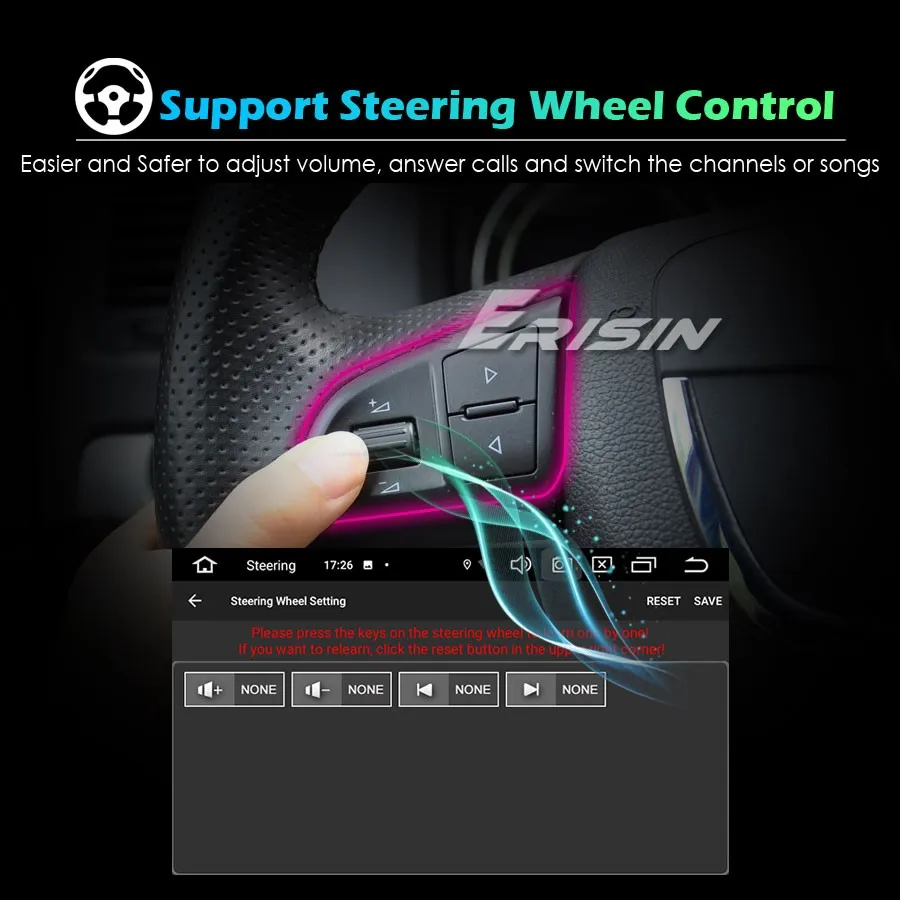 -Поддержка управления рулевым колесом, легче и безопаснее регулировать громкость, отвечать на звонки и переключать песни во время вождения.