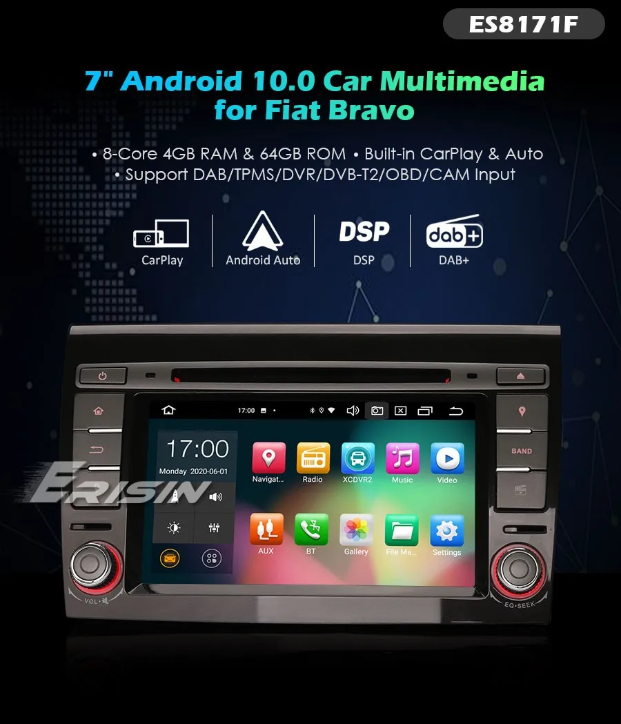 ES8171F 7 "Восьмиядерный емкостный Android 10,0 Автомобильный мультимедийный плеер GPS4 Гб + 64 Гб OBD2 DAB + Canbus WiFi 3G/4G USB DVR DTV-IN TPMS Bluetooth...