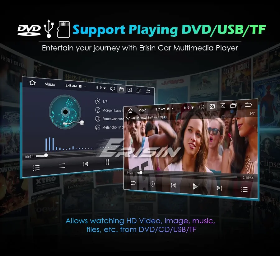 -Встроенный мультимедийный плеер Android, может воспроизводить музыку/видео/фото с локального диска или USB/TF.
