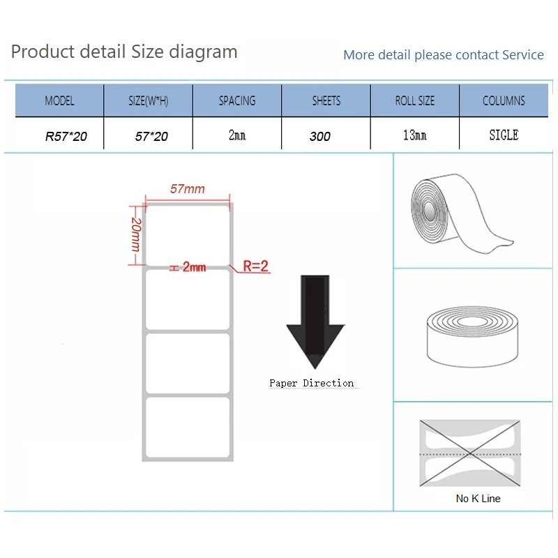 Высококачественная термоэтикетка 57 мм x 20 мм 300 шт/рулон Белый термальный штрих-код для портативного термопринтера штрих-кода