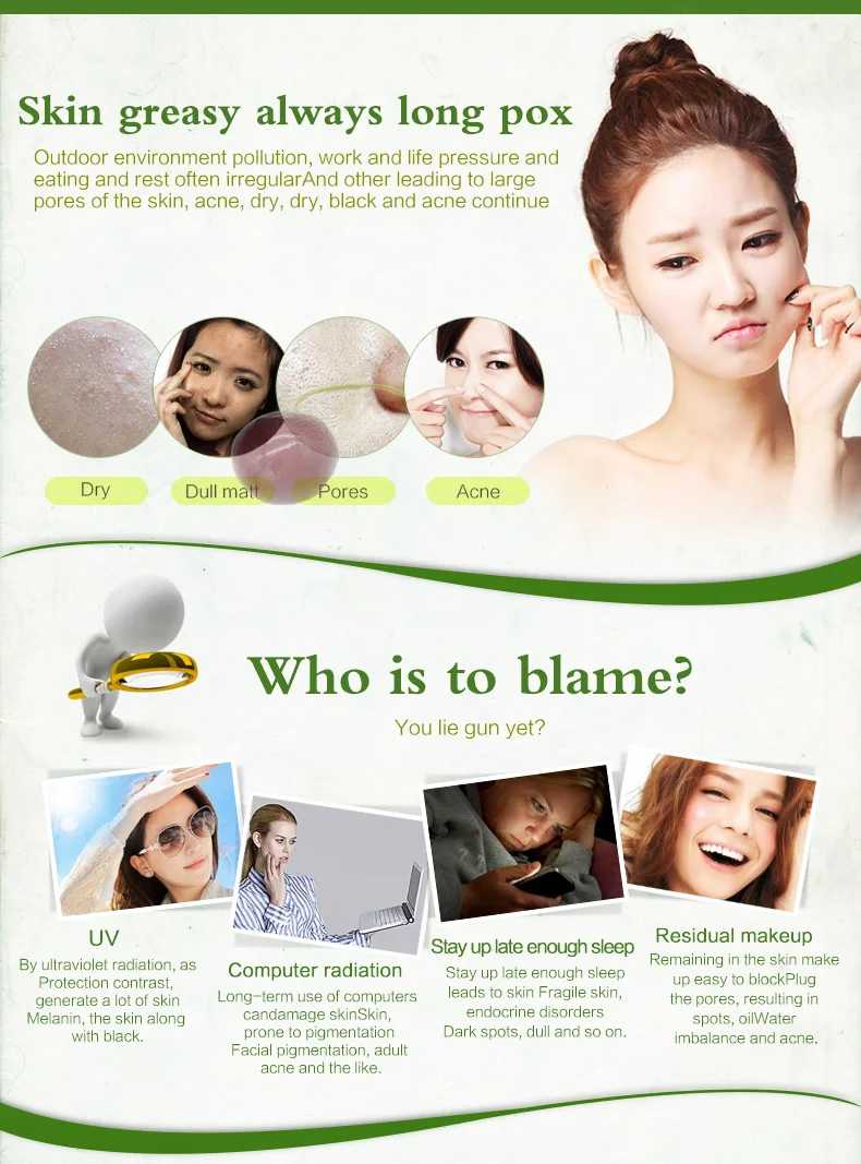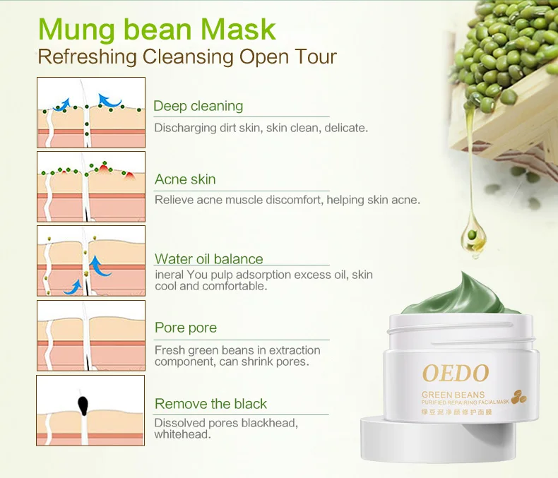 Содержит экстракт зеленых бобов, Его текстура мягкая и деликатная, которая легко впитывается. Он может пополнять богатую влагу и питание, чтобы облегчить сухость и шероховатость кожи и очистить поры кожи и косметические остатки. В то время как он также может улучшить тусклую кожу, укрепить поры кожи и сохранить контроль масла для удаления акне, оставив вашу кожу влажной и гладкой С пухлой яркостью.