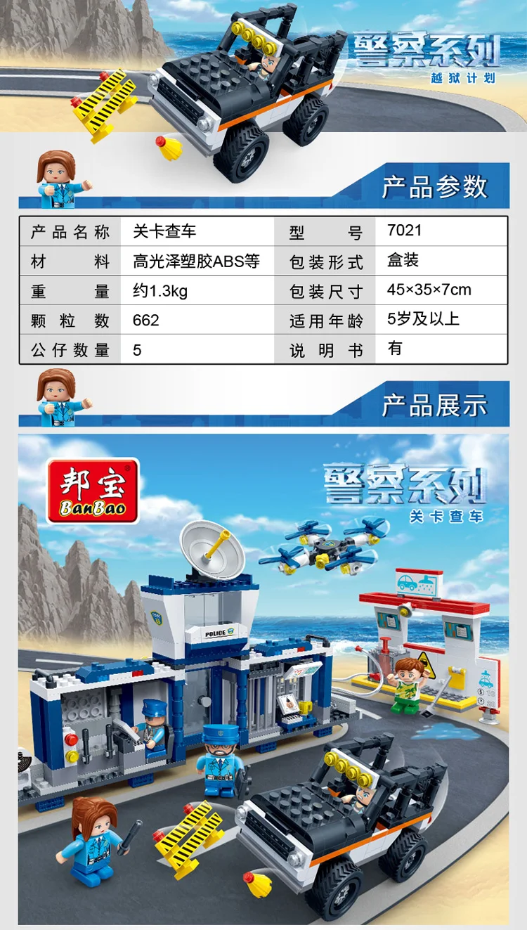 Баньбао полицейский участок контрольной точки Бла (беспилотный летательный аппарат автомойка кирпичи обучающие строительные блоки игрушечная модель 7021 детский свитер; подарок