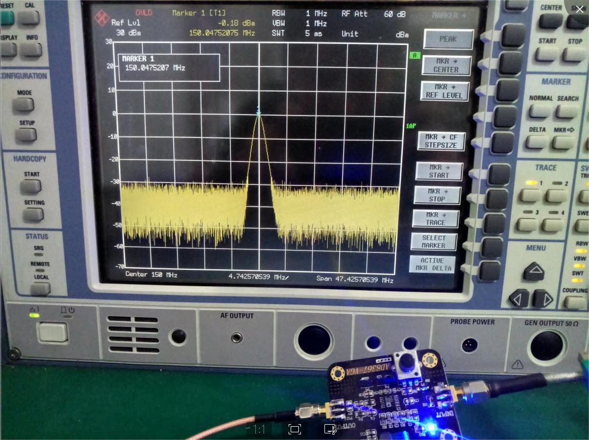 Выходной сигнал: 150 МГц-0,18 дБм коэффициент усиления: 41 дБ