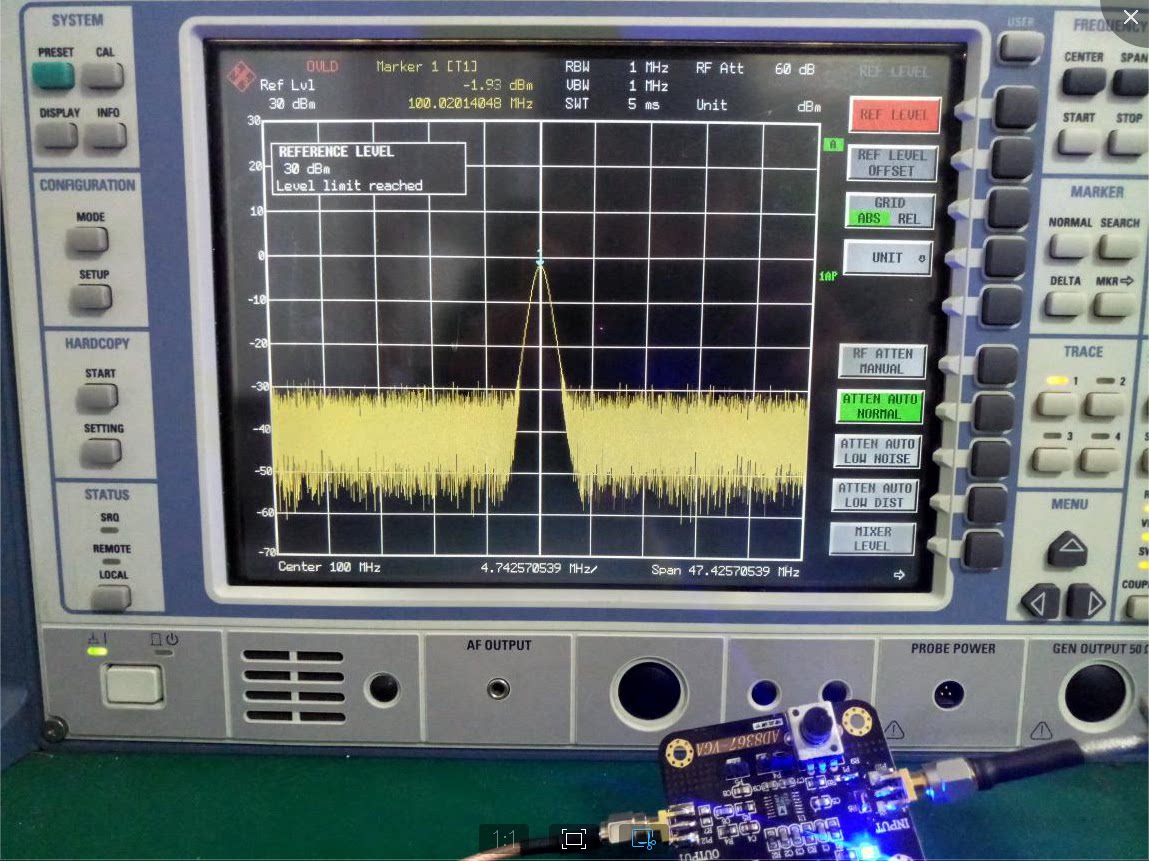 Выходной сигнал: 100 МГц-1,93dbm коэффициент усиления: 40 дБ