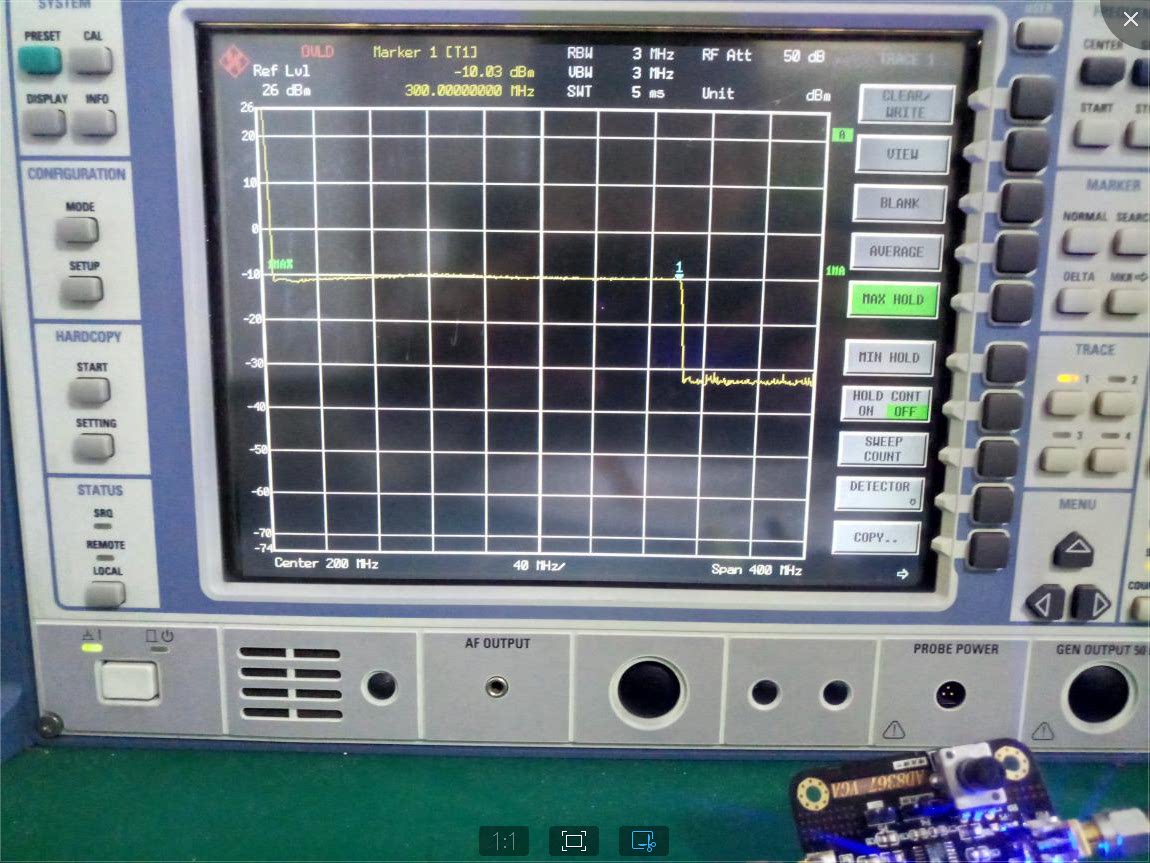 Выходной сигнал: 200 МГц-0,18 дБм коэффициент усиления: 40 дБ