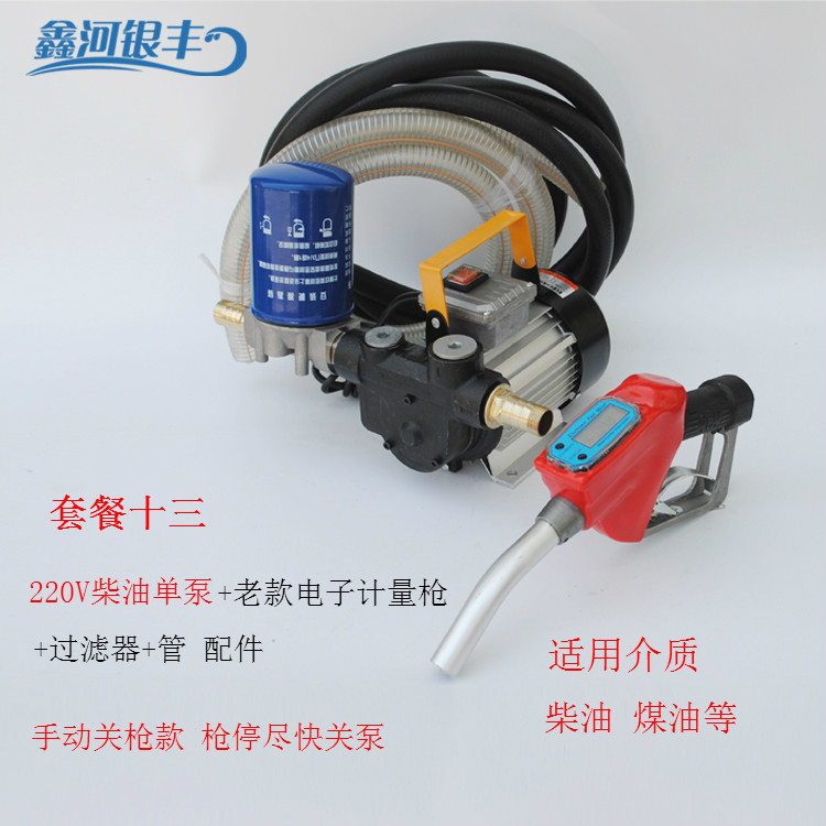 220V с полкой дизельный насос + электронный само-запечатывания Дозирующий пистолет + паровойнабор дизельного Универсальный фильтр + черная резиновая труба на солнечных батареях (длина 6 метров, внутренний диаметр 1 дюйм) + прозрачная трубка (длина 4 метра, внутренний диаметр 1 дюйм) + шарниры (Ручное выключение пистолета, рекомендуется использовать выключатель дистанционного управления)