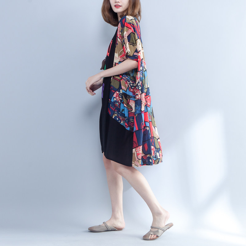 Trytree/летнее Повседневное платье с отложным воротником из хлопка полиэстера темно