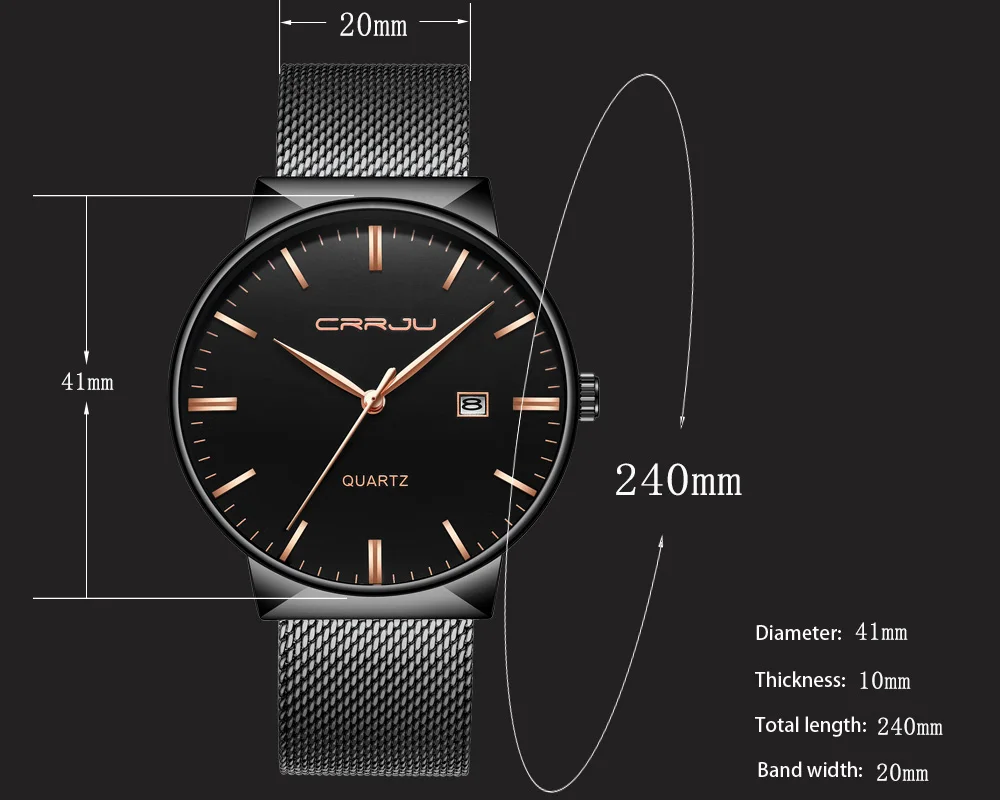 Диаметр циферблата: 41 мм Чехол Толщина: 10 мм Длина Часов: 24 см Ширина ремешка: 20 мм Глубина водонепроницаемости: 3Bar Особенности: Механизм: кварцевый механизм с временным модулем (Сделано в Японии) Зеркало Материал: Hardlex Водонепроницаемость: ручная стирка, плавание, без проблем! Идеально подходит для любого вида бизнеса, повседневной, домашней деятельности или повседневного использования. Примечание: Пожалуйста, не нажимайте кнопки в воде или носите эти часы для длительного использования под водой, например, для дайвинга и т. д. 12 месяцев гарантии на движение